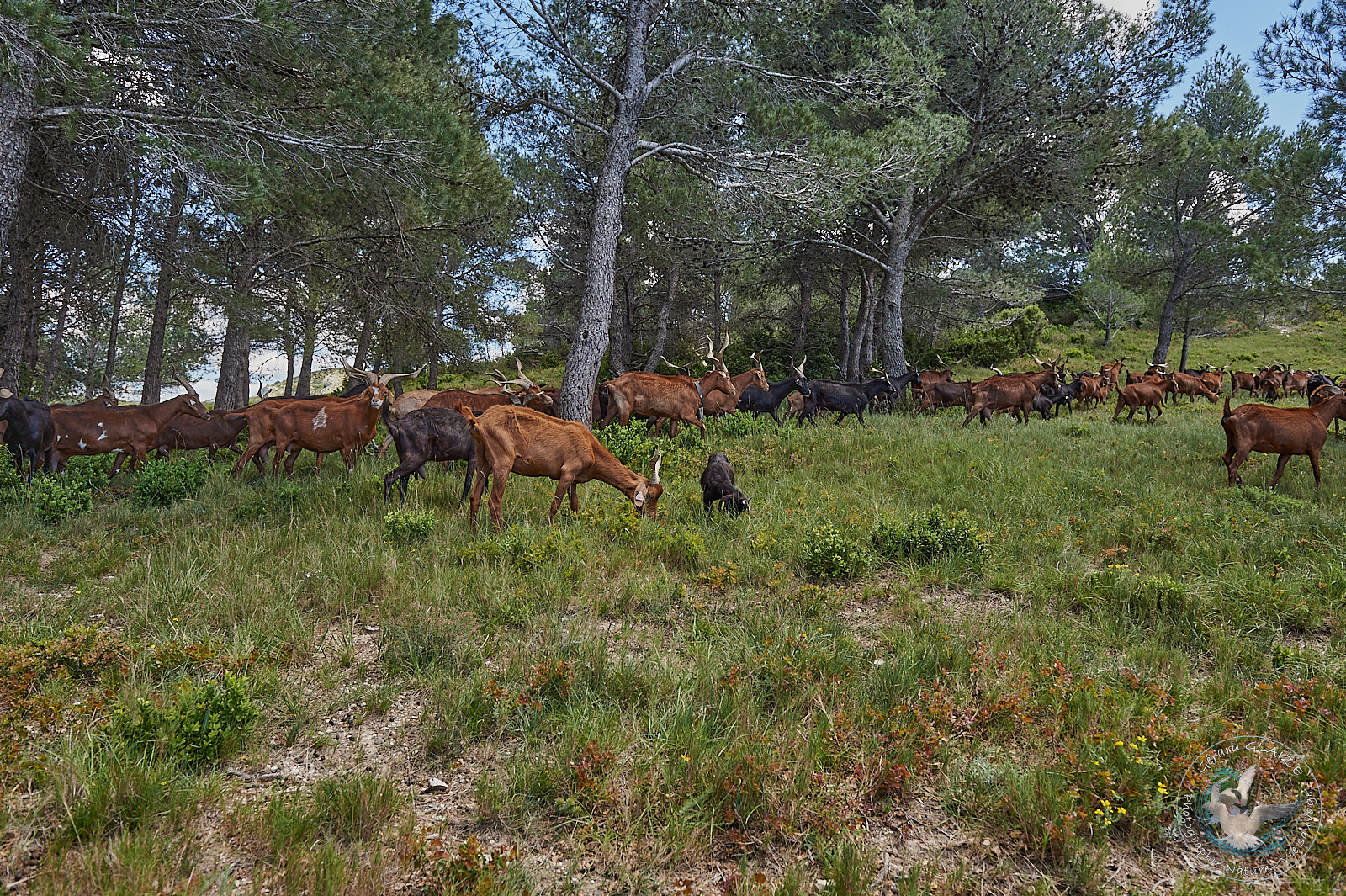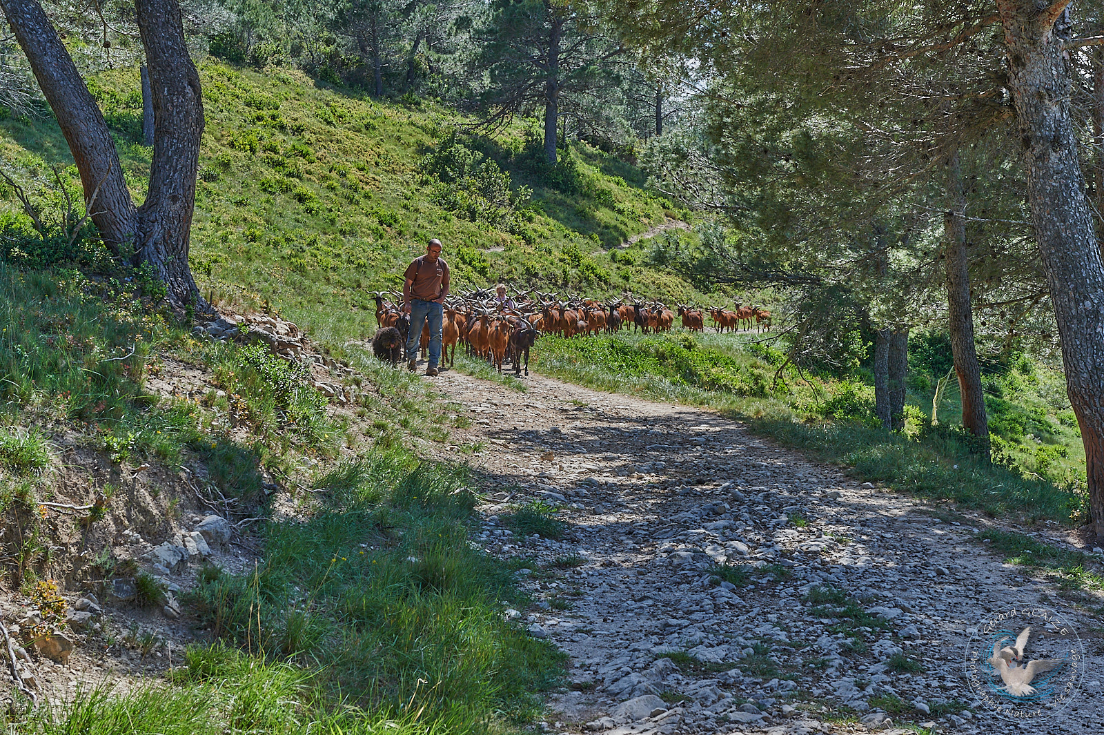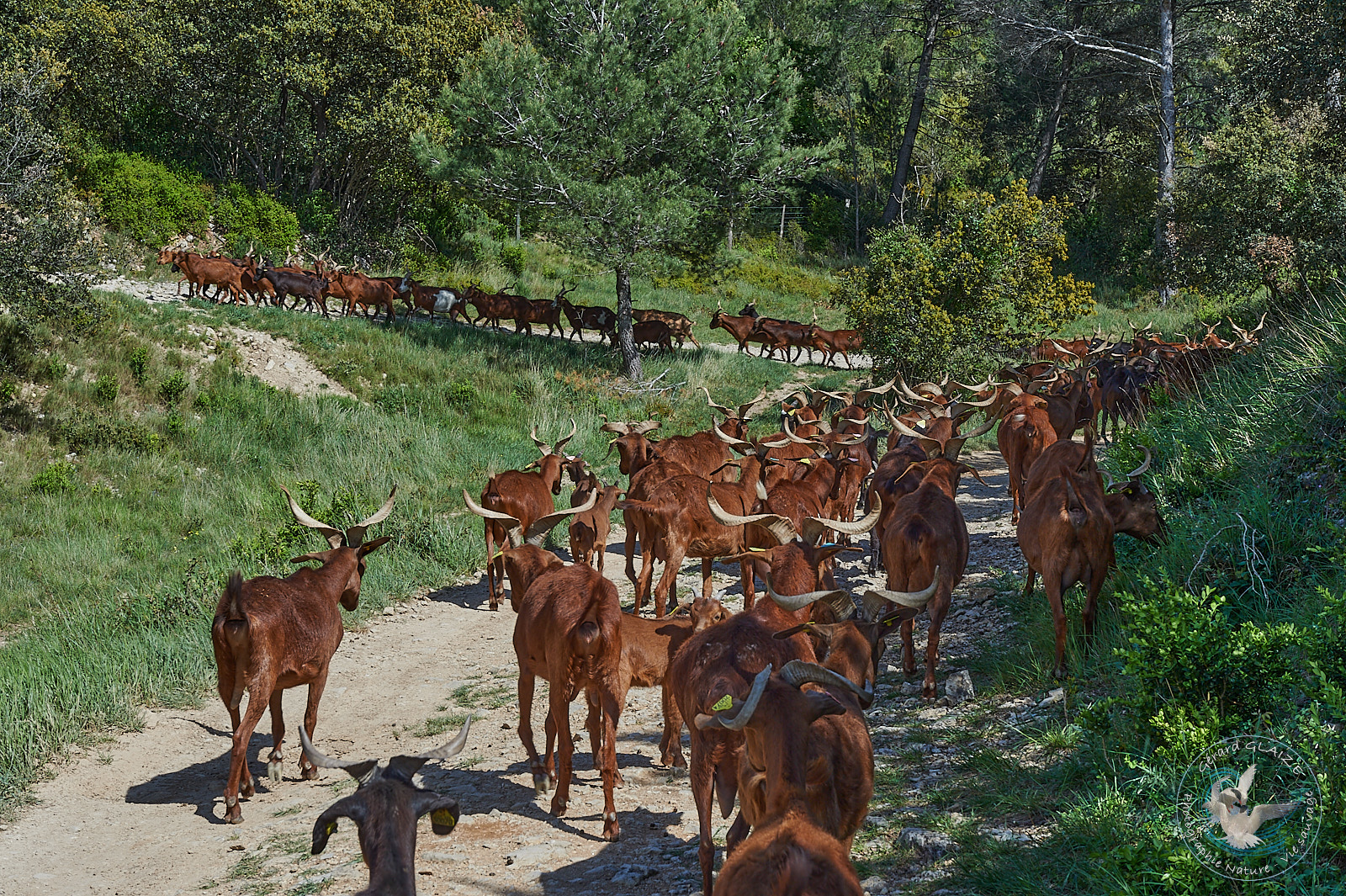 Troupeau de chèvre du Rove près du village d'Aureille.