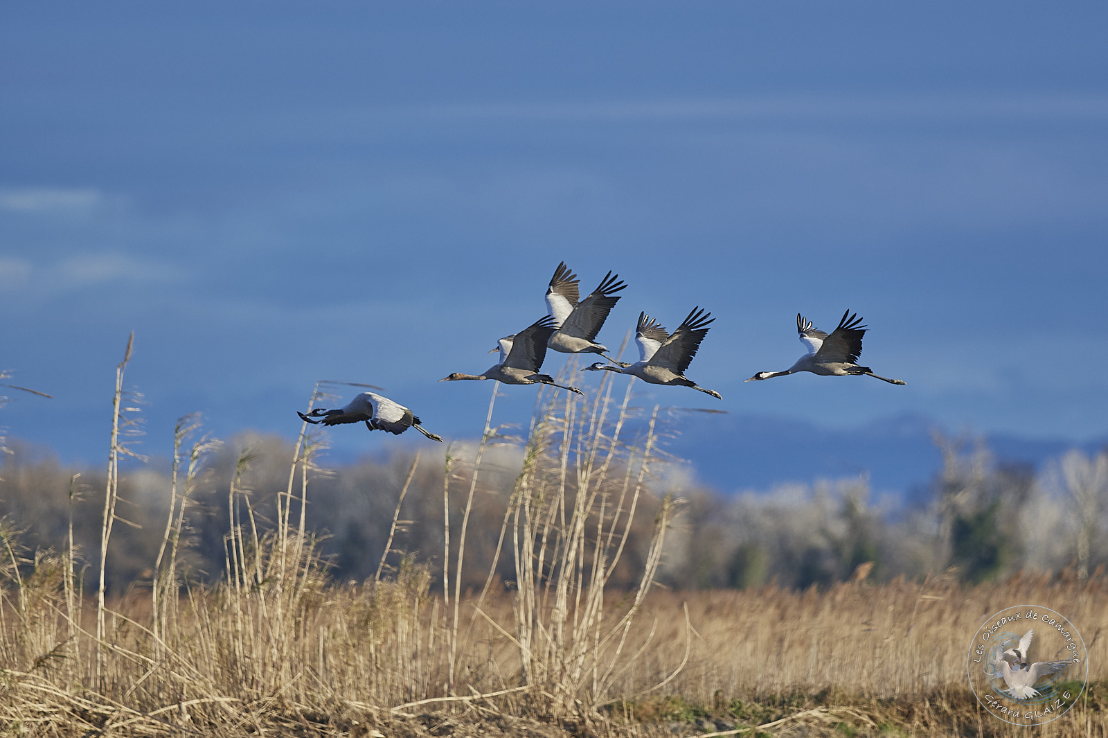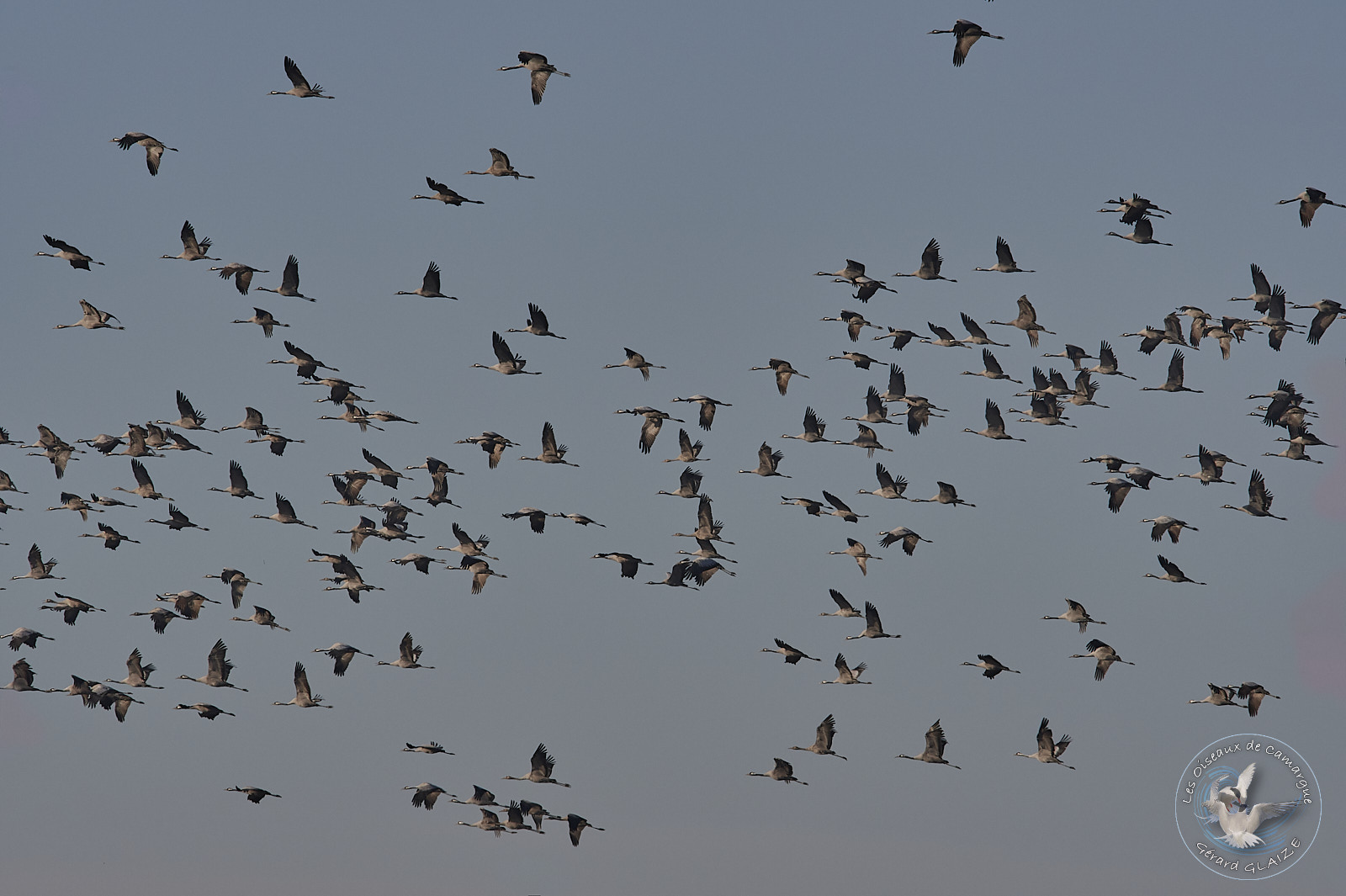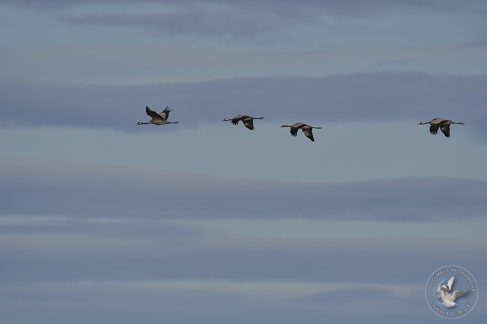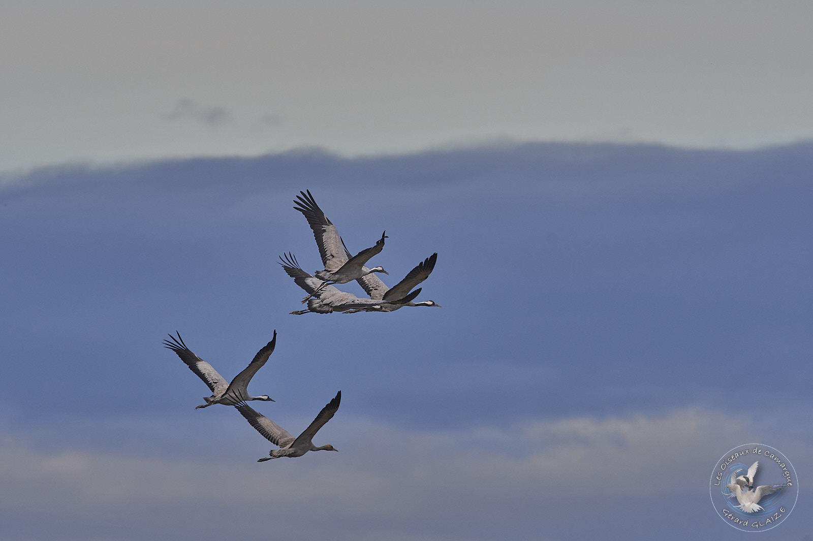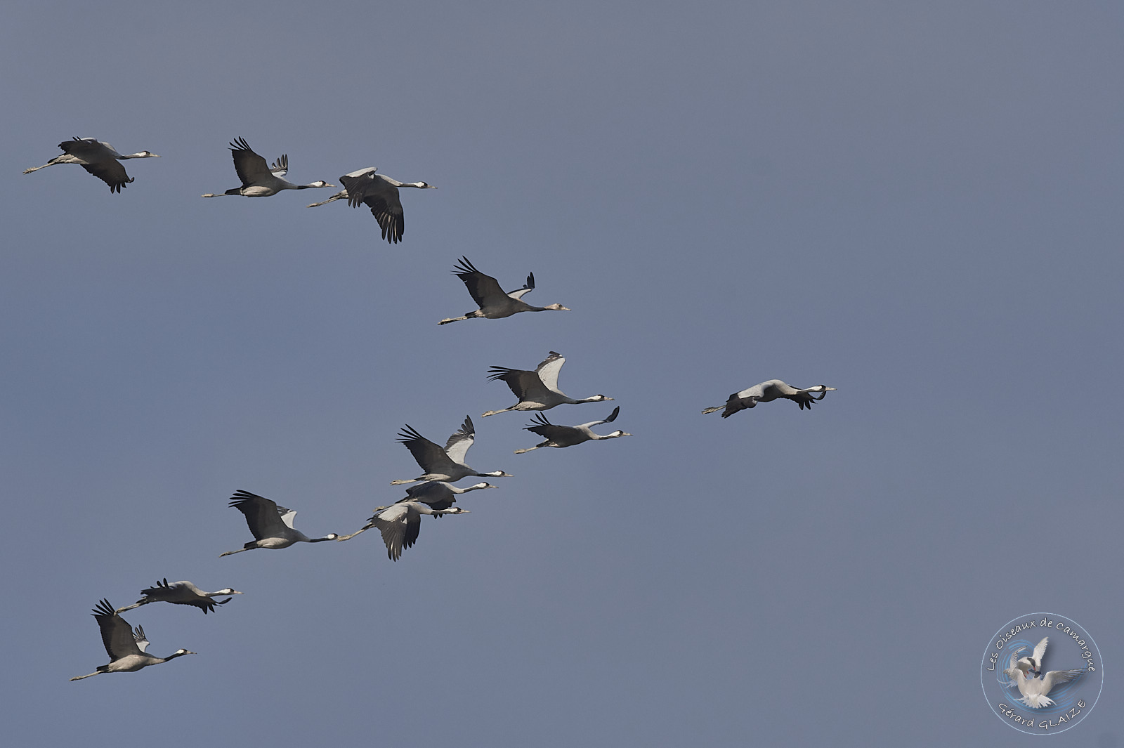 Les oiseaux en vol se positionnent donc les uns derrière les autres, pour former cette disposition en V. Comme les cyclistes qui se suivent, leur pénétration dans l’air est alors facilitée et leur permet de couvrir de longues distances. Ce type de vol avec formation en V s’observe surtout chez les grands oiseaux (Grues cendrées, oies, etc…) En Camargue on peu parfois observer les grues cendrées voler avec une formation en V.